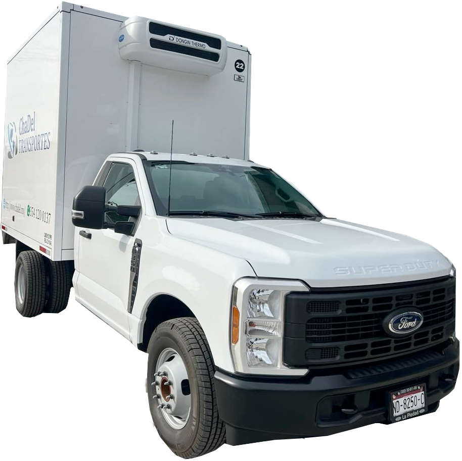 Perfecto para cargas más pequeñas pero igual de importantes, el modelo Ford F350 puede cargar hasta 4 tarimas, proporcionando una solución flexible y eficiente para tus necesidades de transporte refrigerado.